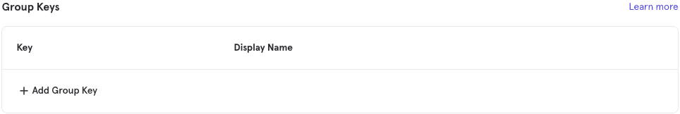 To administer group keys, navigate to your Project Settings. Click +Add Group Key under the GROUP KEYS section.